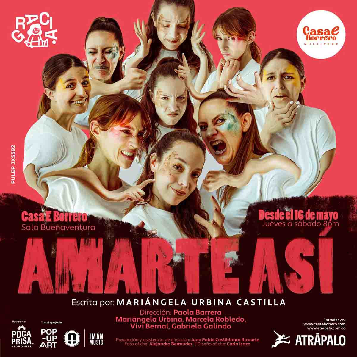 “Amarte así” estará en cartelera en la Sala Buenaventura del Teatro Casa E Borrero los días jueves, viernes y sábado a partir del 16 de mayo. Las entradas ya están disponibles a través de www.casaeborrero.com, www.atrapalo.com y en las taquillas del teatro.