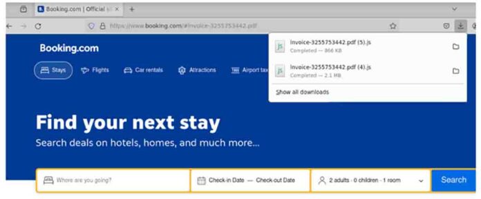 Entre los dominios identificados como peligrosos se encuentran nombres como booking-secure928[.]com y agodabooking[.]top, que imitan a conocidos sitios web de reservas y hospedajes. Estos sitios están diseñados para engañar a los usuarios, solicitando sus credenciales de inicio de sesión bajo falsos pretextos. Un ejemplo reciente incluyó una sofisticada campaña de phishing que empleó correos electrónicos con apariencia legítima, enviados desde direcciones como noreply@b00king[.]biz y con archivos adjuntos que, al abrirse, redirigían a sitios web maliciosos.