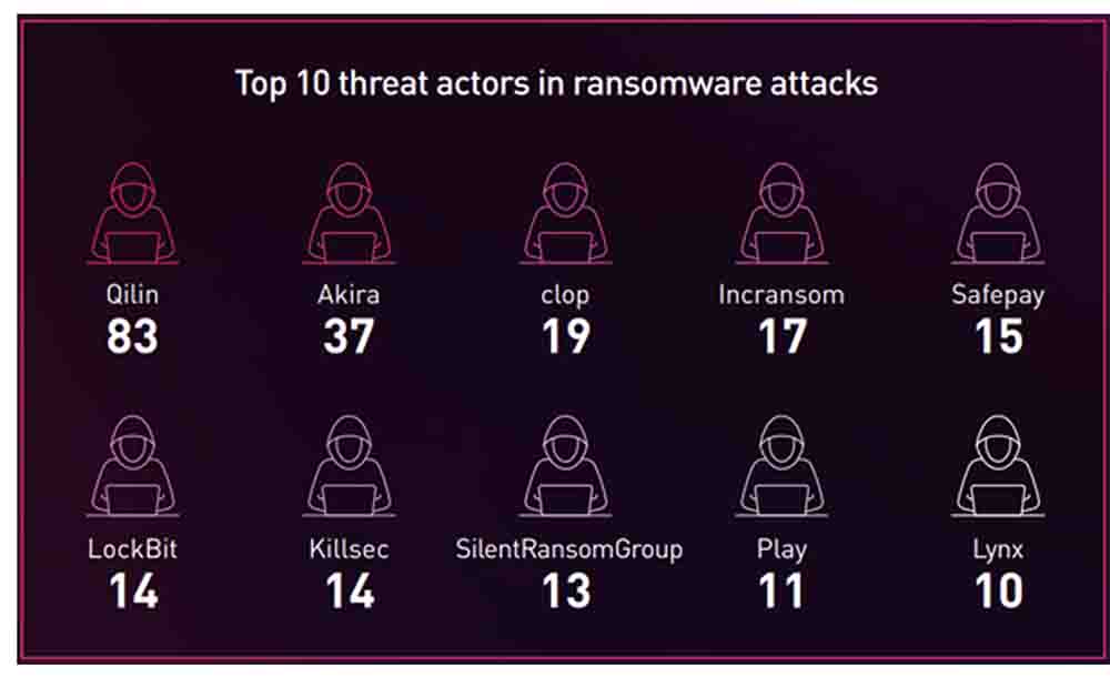 - Los ataques se concentraron principalmente en regiones con tensión geopolítica o alta visibilidad mediática. Israel (112/16,6%), Estados Unidos (40, 5,9%) y Emiratos Árabes Unidos (38, 5,6%) encabezaron la lista, seguidos de cerca por Ucrania (35, 5,2%) y Alemania (34, 5%). Este patrón refleja un enfoque estratégico en entidades financieras que simbolizan la resiliencia nacional y la influencia global. La selección de objetivos a menudo tuvo más que ver con el mensaje político que con la postura técnica o las defensas de la víctima.