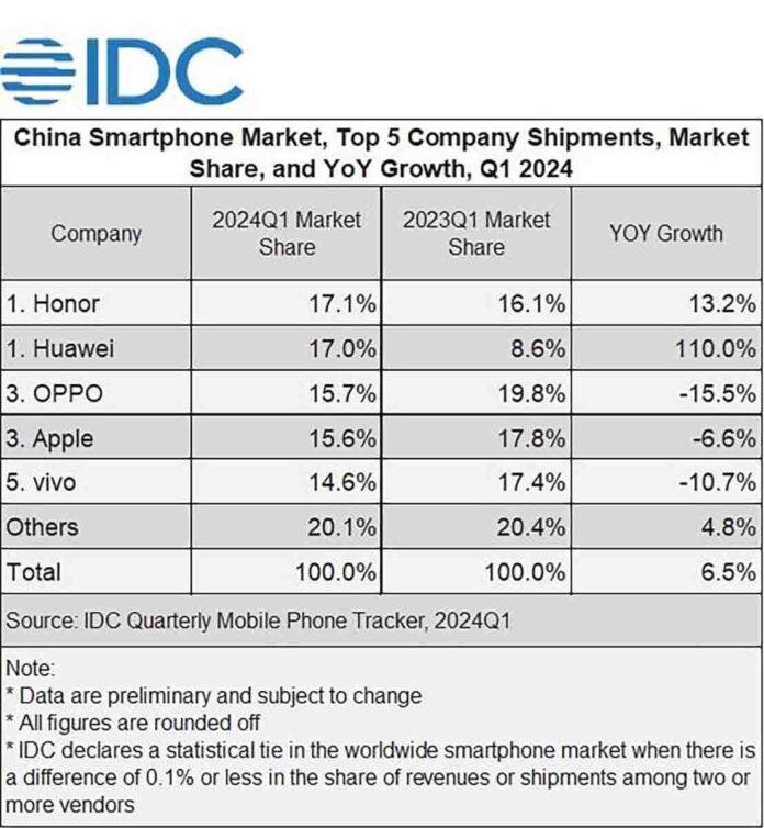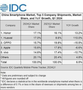 El primer trimestre del año 2024 ha sido testigo de un destacado ascenso en los envíos de smartphones procedentes de China, según lo revelado por un informe de International Data Corporation (IDC). Este informe señala un crecimiento interanual del 6.5%, destacando el desempeño sobresaliente de la marca de tecnología global, HONOR.