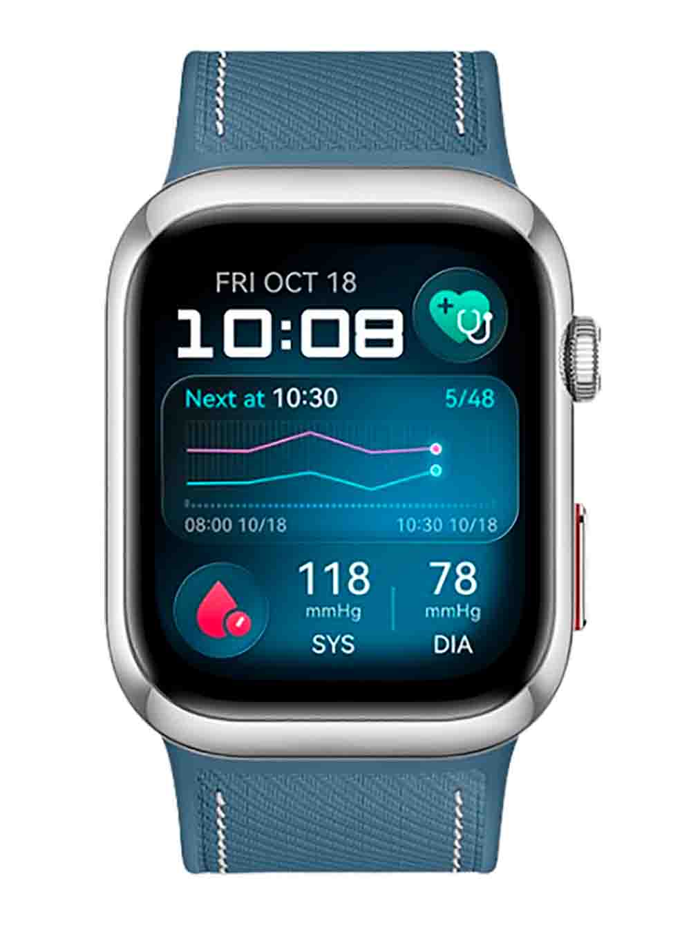 Por su parte, el HUAWEI WATCH D2 llega en un elegante color azul e integra funciones más avanzadas para el control de presión arterial. Incluye recordatorios únicos y recurrentes, mediciones individuales y monitoreo ambulatorio, conformando un sistema completo y versátil para un seguimiento más preciso y confiable de la salud.