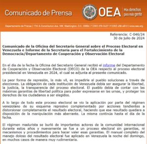 Informe de la OEA sobre las Elecciones Presidenciales en Venezuela 2024: Un Proceso Marcado por la Represión y la Manipulación