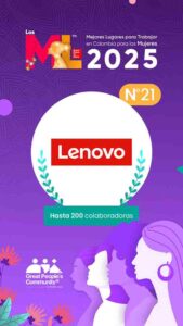 Lenovo fue reconocido en el ranking de Great Place to Work, como una de las mejores empresas para trabajar para las mujeres, gracias al compromiso de la compañía en la creación de un ambiente laboral equitativo, donde el talento y liderazgo femenino son valorados como motores esenciales para el desarrollo empresarial.