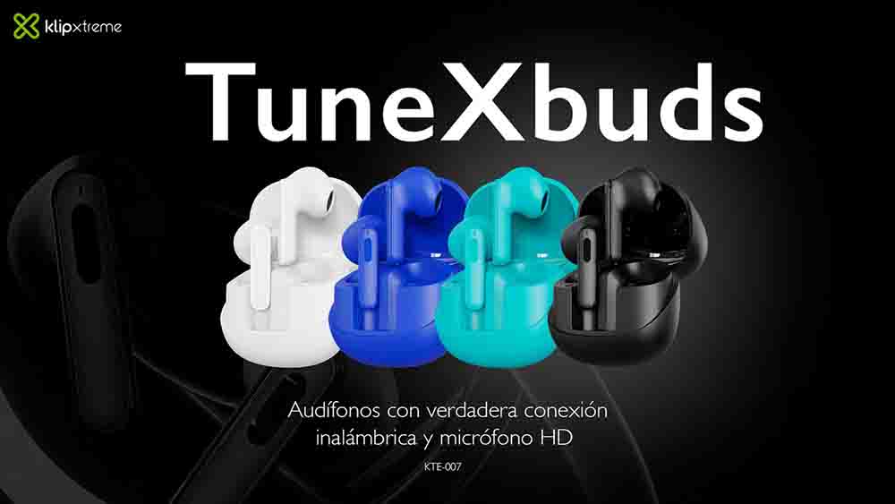 Los TuneXbuds son audífonos TWS con Bluetooth v5.3.2, micrófono HD y resistencia IPX4 al agua y al sudor, disponibles en 4 colores.