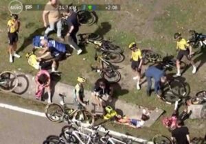 La caída, que tuvo lugar en una curva a unos 33 km de la meta, involucró a Roglic, el joven prodigio belga Remco Evenepoel y al danés Jonas Vingegaard, siendo este último el más afectado por las consecuencias del accidente.
