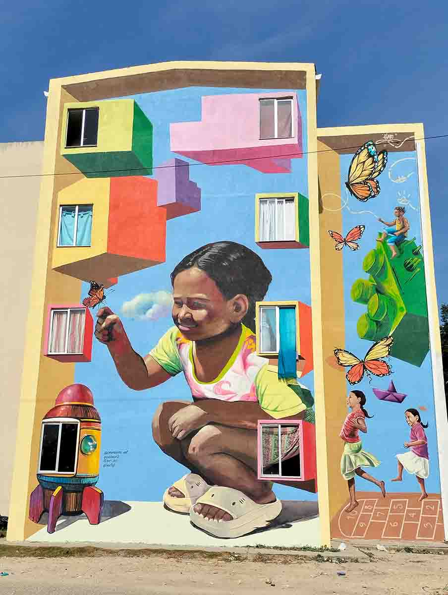 Otro proyecto relevante fue “La Ruta del Color”, realizado en asociación con la Gobernación del Atlántico y financiado por el Sistema General de Regalías de Colombia. Esta iniciativa tuvo como objetivo aprovechar el potencial turístico de municipios como Usiacurí, Piojó y Puerto Colombia, transformando sus espacios públicos más emblemáticos. La Ruta del Color benefició a 76.016 personas y brindó formación en acabados arquitectónicos a 26 miembros de la comunidad.