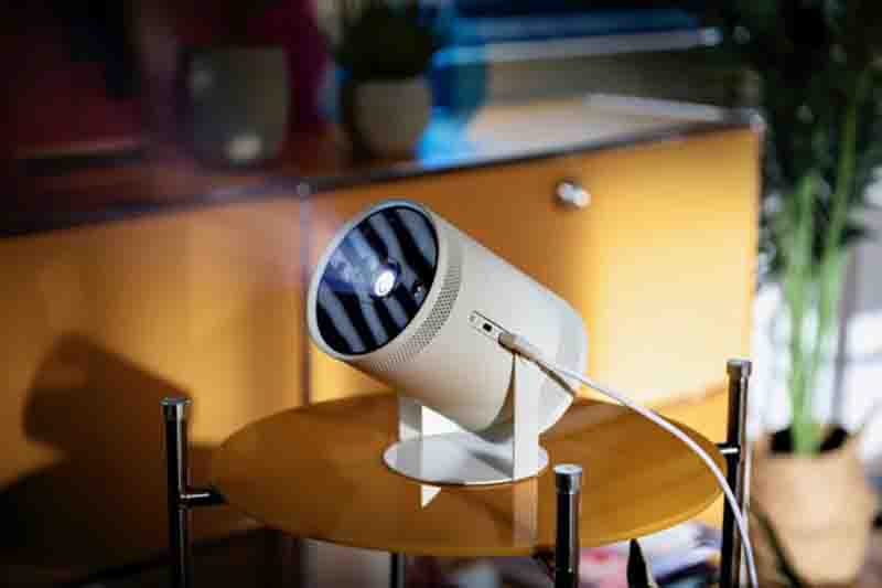 The Freestyle cuenta con altavoces integrados que ofrecen un audio de 360º para garantizar una experiencia inmersiva. También permite vincularlo a otros dispositivos, como las barras de sonido Samsung para un audio aún más potente y envolvente.