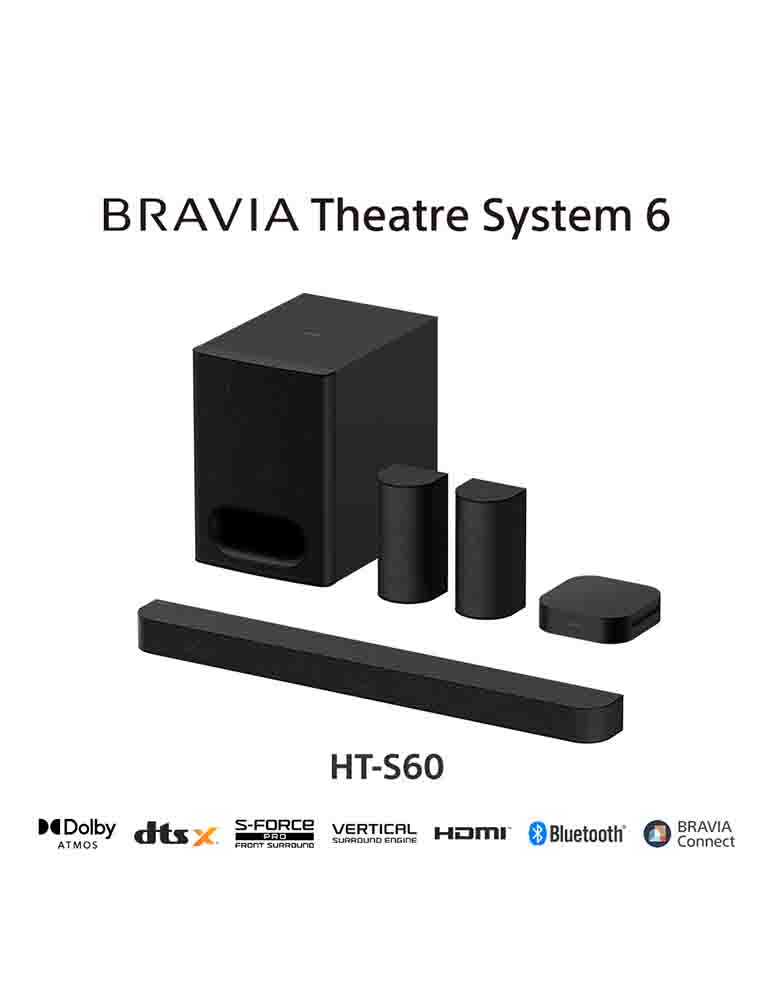BRAVIA Theatre System 6 es un sistema de sonido todo en uno de 5.1ch y 1000 W de potencia con subwoofer que ofrece sonido más profundo e intenso, y bien balanceado. La configuración del altavoz de 5.1ch aporta profundidad, claridad y potencia al sonido, mientras que la compatibilidad con los formatos Dolby Atmos y DTS:X permite disfrutar de paisajes sonoros multidimensionales e inmersivos.